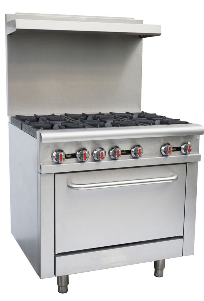• Open top burners, each 30,000 BTU/hr